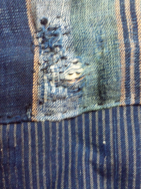 破れるたびにステッチを入れ続けていくと、このつぎはぎ布はいつか壮大な 「刺し子布」 になるだろうなあ、と想像したりする。