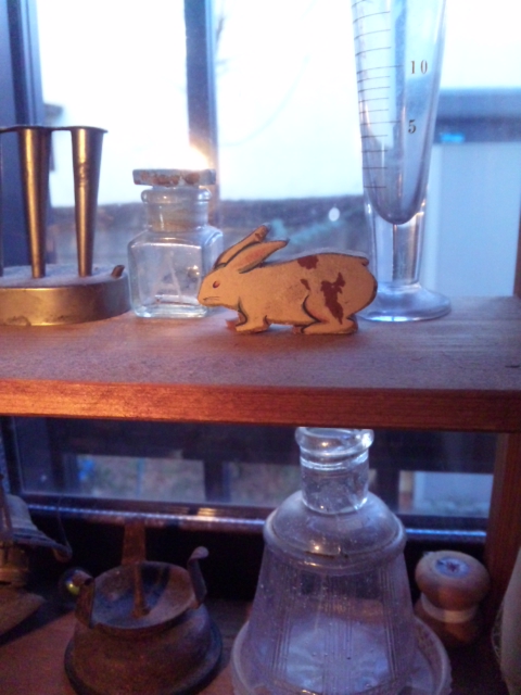 家にもいたよ、3㎝のうさぎが。 フタのない醤油差しや欠けの薬品ビンの間に…。