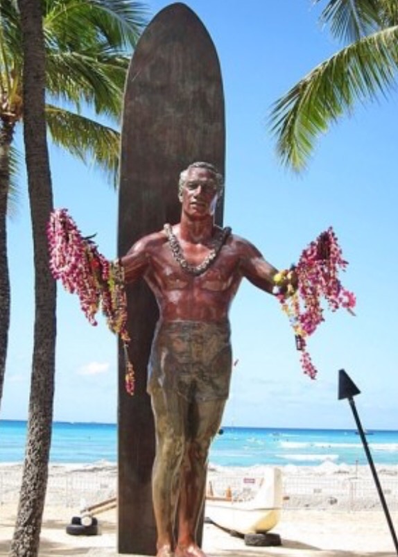 一人が「カメハメハ大王像が見たい」と言い、興味のないあとの二人、ワイキキビーチにある伝説のサーファー像を指さし「ほら、これだよ!」と。