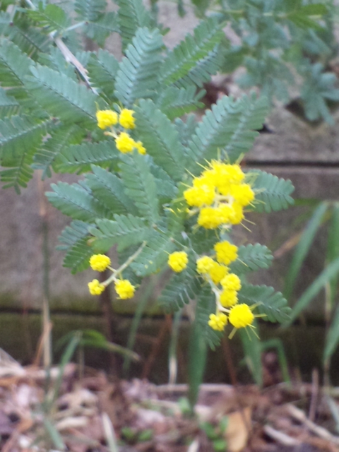 三年目にして、やっとミモザの枝が蕾をつけました。たった一枝だけど。
