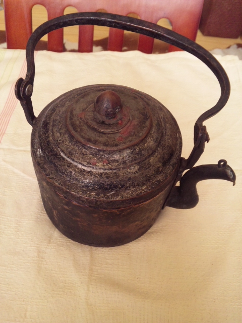ほれぼれするような銅やかん。相変わらず目がなくて、相変わらず失敗し、(使用不可能。)成功例だけを売ってます。これは数少ない成功例。日本製の厚手で、狙ってない(当たり前だね)ゆがみがたまらない。蓋部分が大きく開くので使いやすそうです。