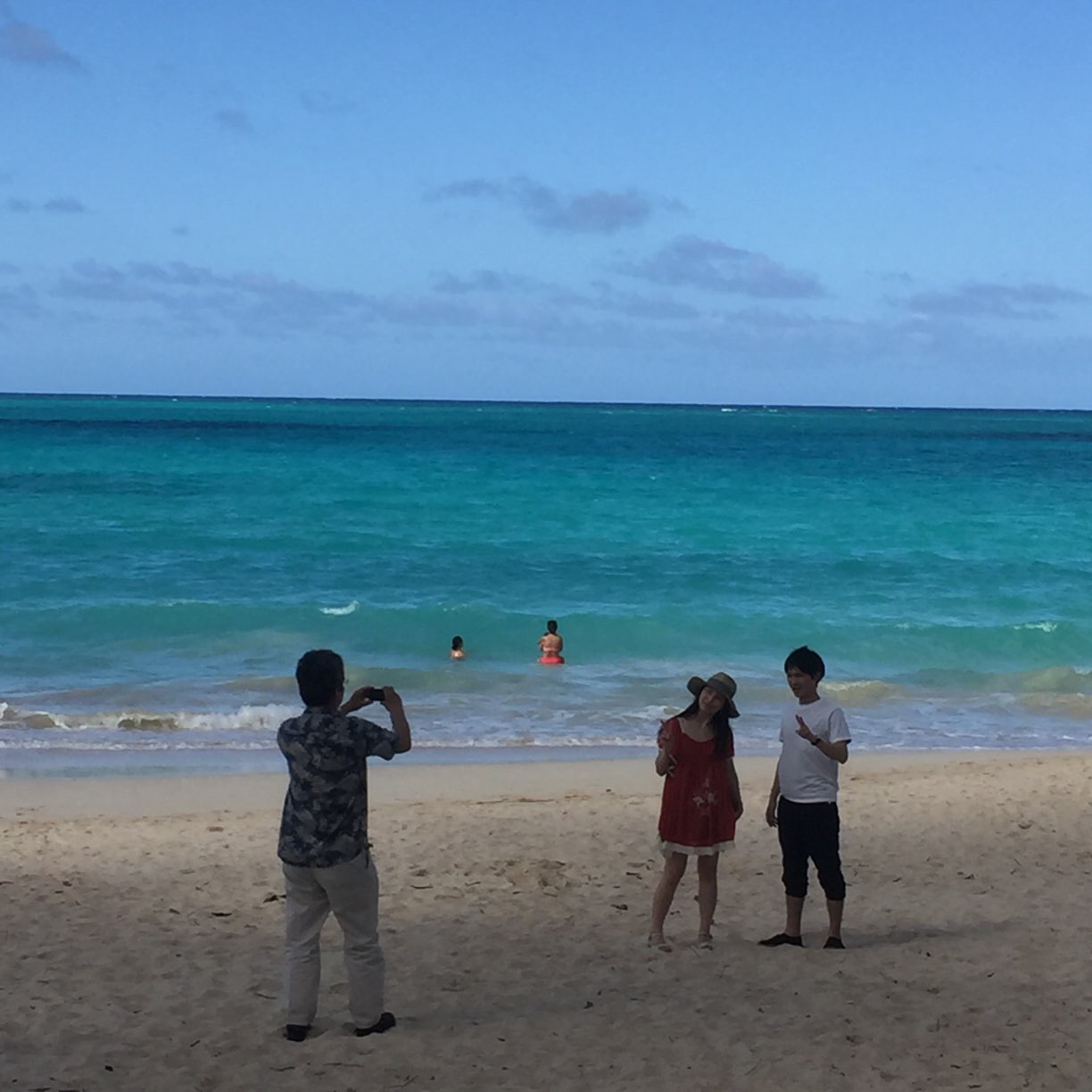 一人が「カメハメハ大王像が見たい」と言い、興味のないあとの二人、ワイキキビーチにある伝説のサーファー像を指さし「ほら、これだよ!」と。