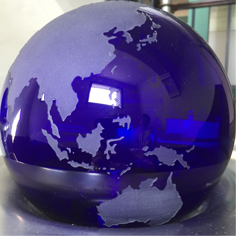 このガラス玉の飾りは世界地図の加工でした。うーん、大正時代の小樽、強気…!