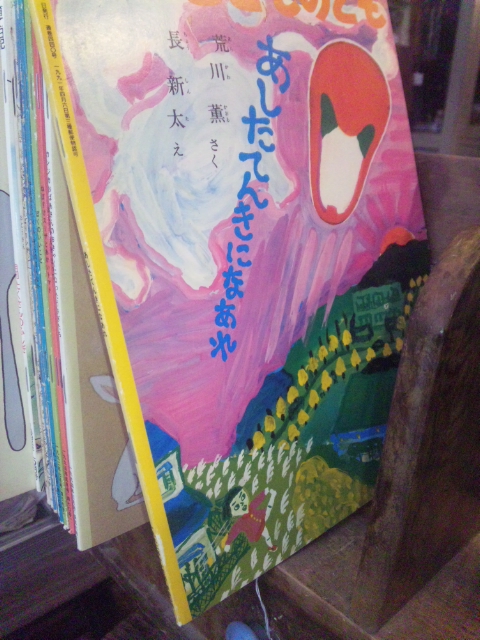 というわけで、 店の一角に、 こどものとも (1P ¥50)、 ハードカバーの傑作集 (1P ¥100~)、 その他の絵本も格安で販売中。