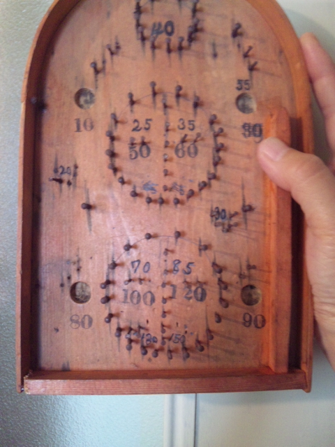 小さな数字と鉄釘が打たれただけの、逆U字形の盤面が美しいと思い、クリスマスオーナメントをいくつもぶら下げてツリーがわりにしていたこともあります。