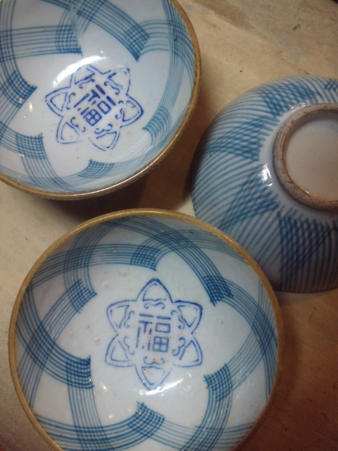 これはお茶碗ですが、小皿も大鉢も小鉢もあり、見込に文字なしもあります。